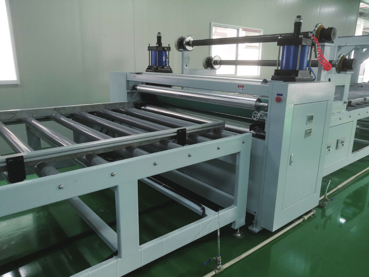 This line is mainly used for applying PUR on the surface of panels for laminating film. The amount of spread can be controlled by
